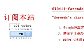 第一喜:feedburner订阅数终于突破100,达到106人,同时feedsky订阅数也第一次达到28人。我的feedsky是对feedburner烧录后内容的再烧录,目前在博客首页sidebar的订阅图标主要是feedsky的。