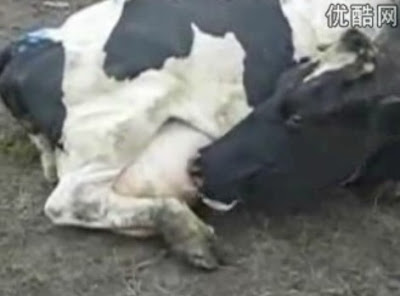 暴强!!奶牛竟然吸自己的奶!!(视频+组图)