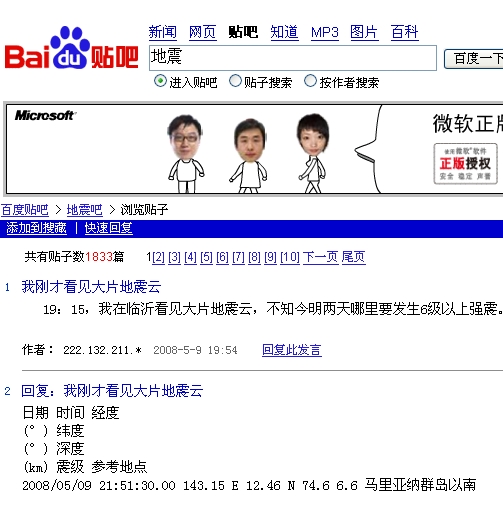 《我刚才看见大片地震云》发表于2008-5-9 19:54: